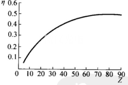 圖 4. 背散射信號產率 η 與原子序數 Z 的關系。Z 越大,信號越多。